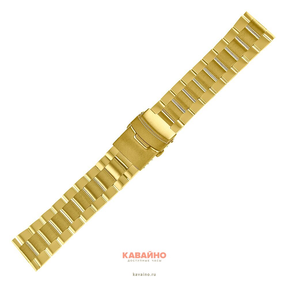 Ширина ремешка в 22 мм придаёт браслету внушительный и уверенный вид, а длина 185 мм позволяет комфортно носить его на запястье различной толщины. Золотистый цвет добавляет нотку элегантности и роскоши, что делает этот браслет не только аксессуаром, но и настоящим украшением вашего образа.