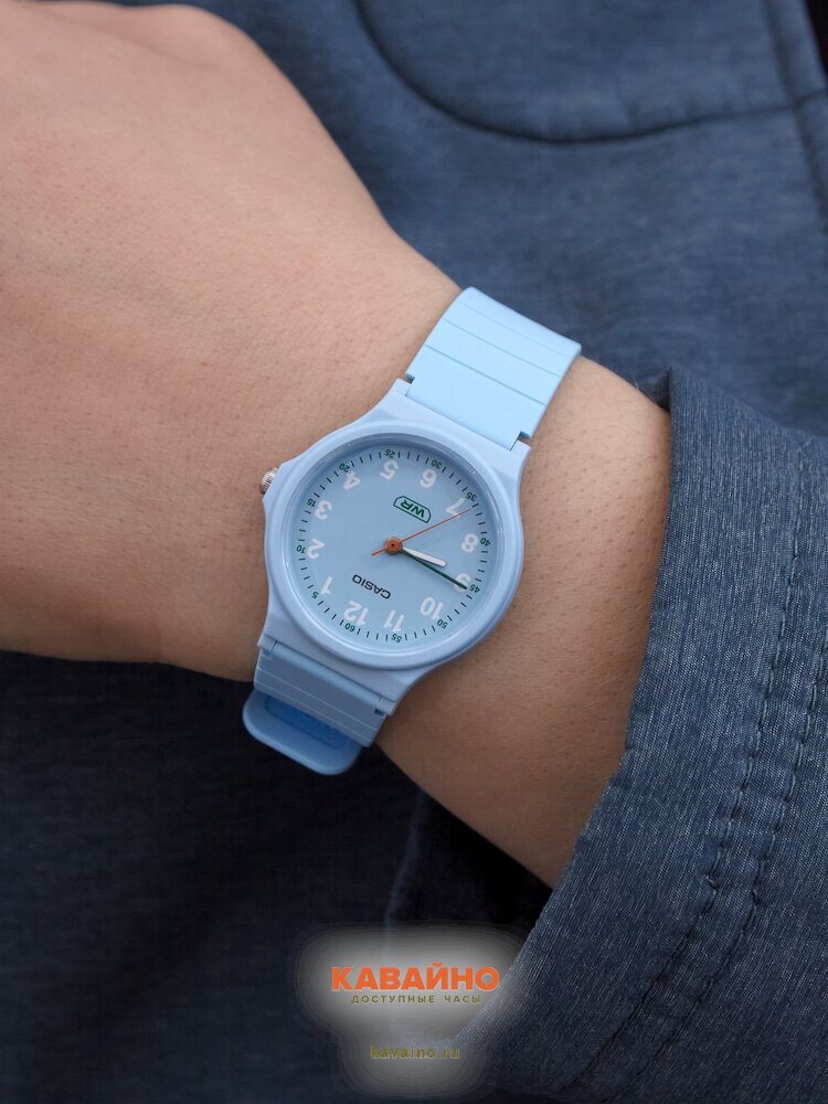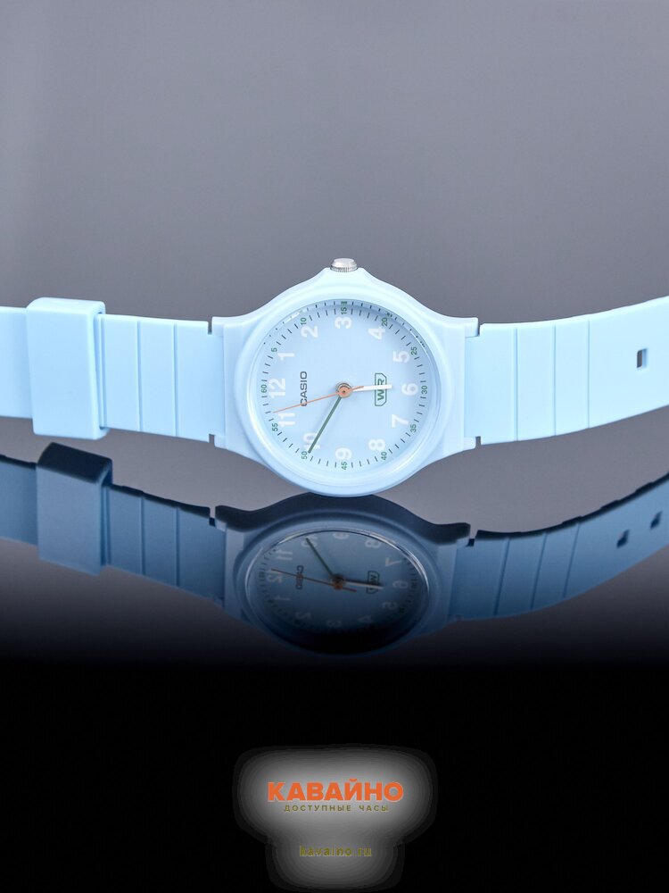 Корпус часов выполнен из прочного пластика нежно-голубого цвета, что делает их легкими и комфортными для ежедневного ношения. Цвет циферблата также голубой, а арабские цифры на нем четко выделяются, обеспечивая легкость считывания времени в любой ситуации. Ширина ремешка составляет 17 мм, а длина — 170 мм, что позволяет удобно фиксировать часы на запястье. Ремешок из пластика гармонично дополняет общую концепцию аксессуара и придает ему современный вид.