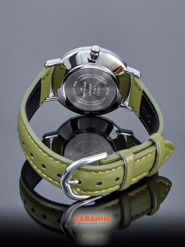 Корпус часов выполнен из прочного хромированного алюминия, что обеспечивает надежность и долговечность, а стильный бежевый циферблат с четкими делениями и акцентами отлично контрастирует с зеленым кожаным ремешком, который подарит вам комфорт на протяжении всего дня. Длина ремешка составляет 190 мм с шириной 16 мм, что делает эти часы идеальными для большинства женских запястий.