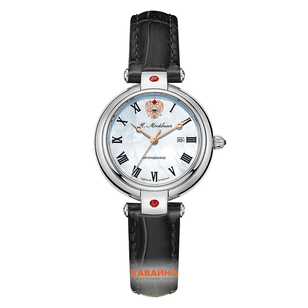 Корпус из нержавеющей стали с хромовым покрытием придаёт часам роскошный блеск, а перламутровый циферблат с римскими цифрами и инкрустацией стразами делает каждую деталь поистине великолепной. Удобный черный кожаный ремешок подчеркивает ваш стиль и обеспечивает комфорт в носке, а ширина 14 мм идеально подходит для запястья.