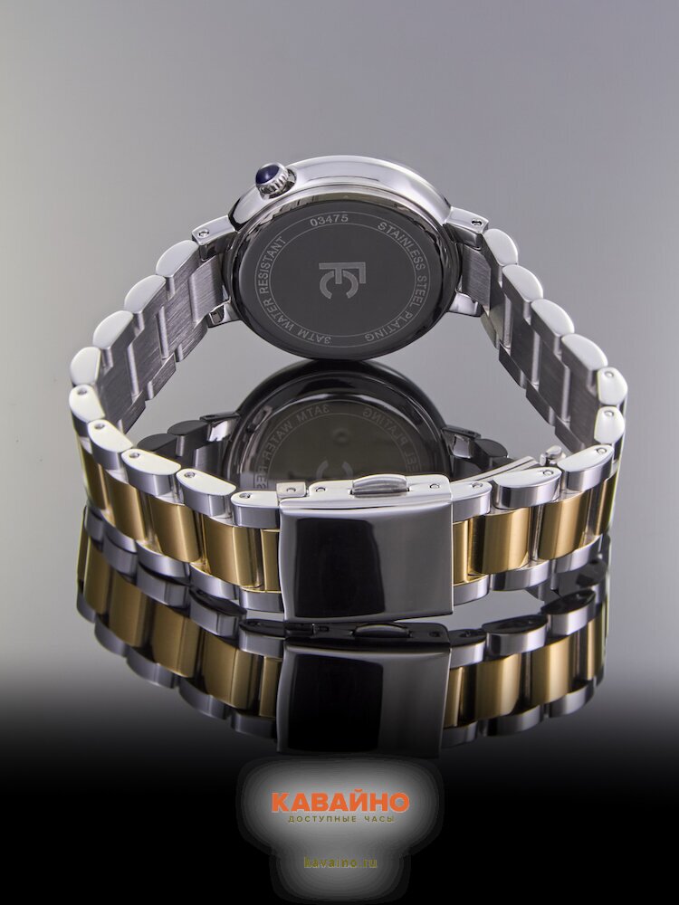 Браслет из нержавеющей стали золотистого цвета великолепно контрастирует с хромированным корпусом, создавая гармоничное сочетание. Ширина браслета в 14 мм и длина 165 мм идеально подходят для женской руки, обеспечивая удобство в носке. К тому же, FERRUCCI 03475-04 характеризуются отличной водонепроницаемостью класса 3 Bar, что позволяет носить их в повседневной жизни без лишних забот.