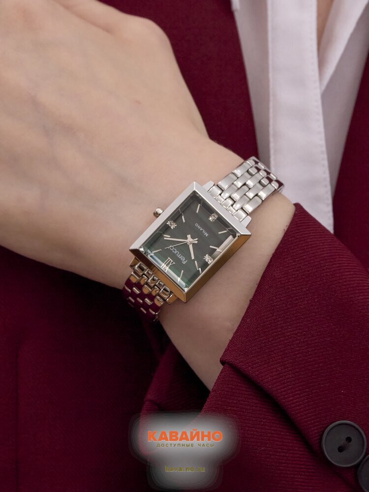 С их помощью вы всегда будете в центре внимания, благодаря хромированному корпусу и браслету из нержавеющей стали, которые не только привлекают взгляд, но и надежно служат в любых условиях. Прямоугольная форма и комбинированный тип индикации придают модели оригинальность, а зелёный циферблат с изысканными кристаллами превращает каждую минуту в произведение искусства.