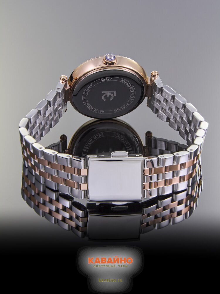 С классическим аналоговым способом отображения времени и римскими цифрами на синем циферблате, данная модель привлекает внимание и добавляет нотку утончённости. Корпус в розовом золоте из легкого сплава и стильный хромированный браслет из нержавеющей стали создают великолепный контраст, подчеркивая элегантность изделия.