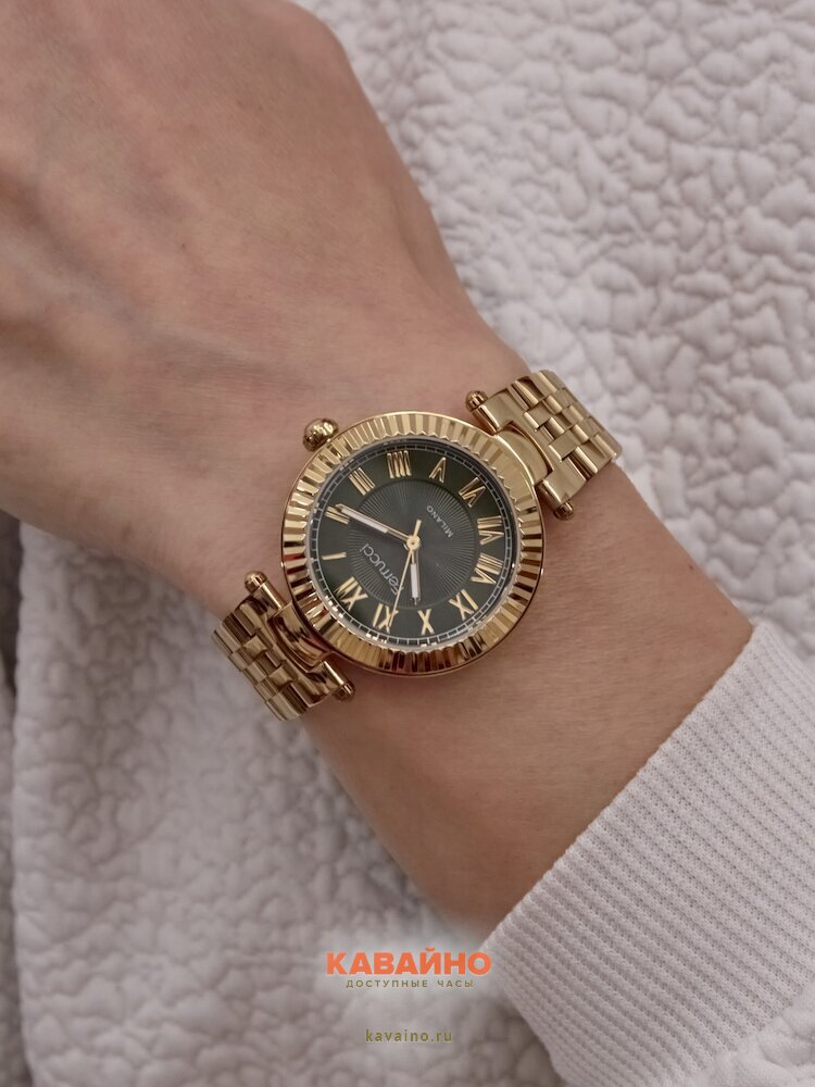 Часы FERRUCCI 03477-06 имеют классический аналоговый способ отображения времени, что делает их легкими и удобными в использовании. Стиль Fashion в сочетании с золотистым цветом корпуса и ремешка из нержавеющей стали привлекает внимание и подчеркивает вашу индивидуальность. Уникальный зеленый циферблат с римскими цифрами добавляет изюминку, а также обеспечивает четкость и читаемость времени.