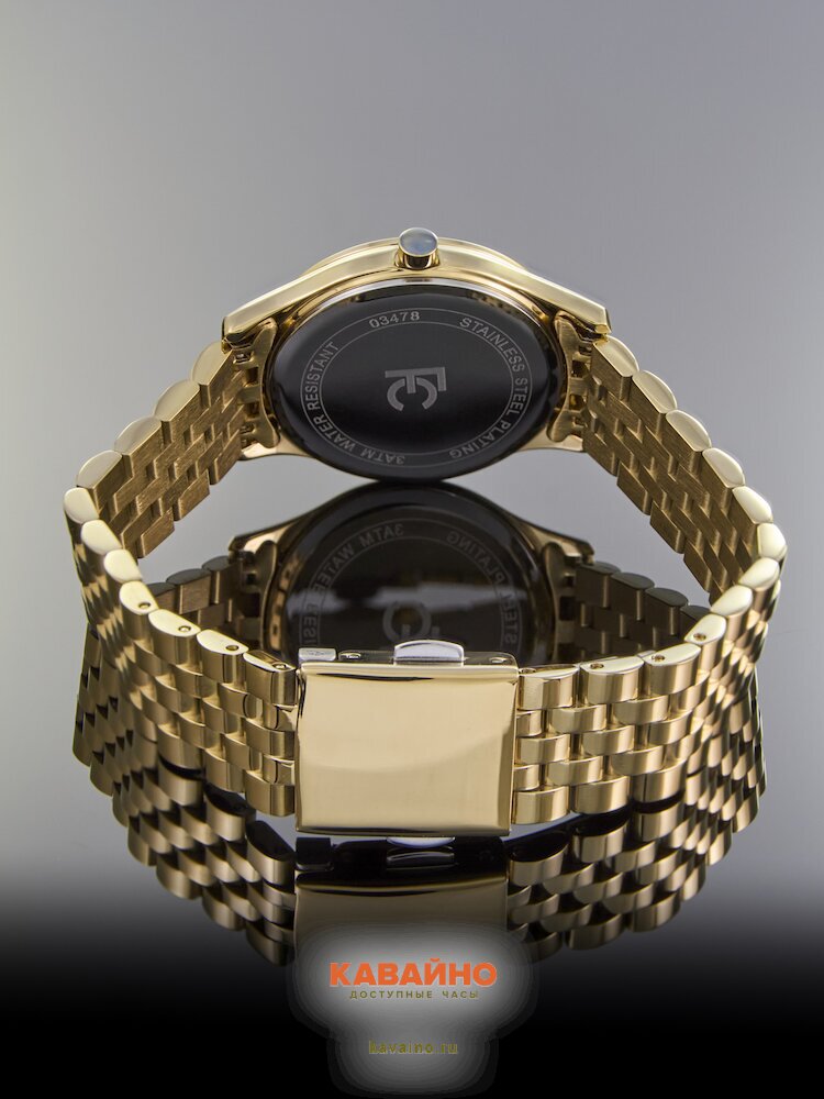 Круглая золотистая форма корпуса из легкого сплава подчеркивает вашу уникальность, а нержавеющая сталь браслета не только добавляет прочности, но и обеспечивает комфорт на протяжении всего дня. Браслет и корпус в одном цвете создают гармоничный образ, который легко сочетать с любым нарядом — от делового до вечернего.