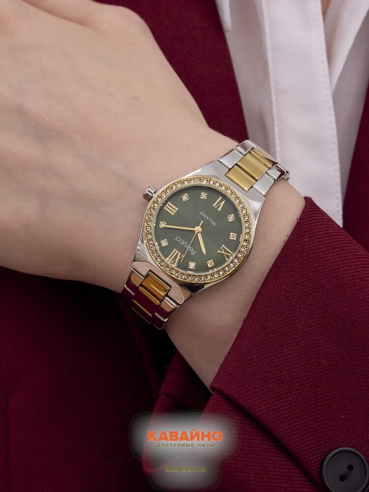 Зеленый циферблат с комбинированной индикацией создает стильный контраст и делает чтение времени легким и приятным. Блеск кристаллов, вставленных в дизайн, добавляет часам изысканности и подчеркивает вашу индивидуальность.