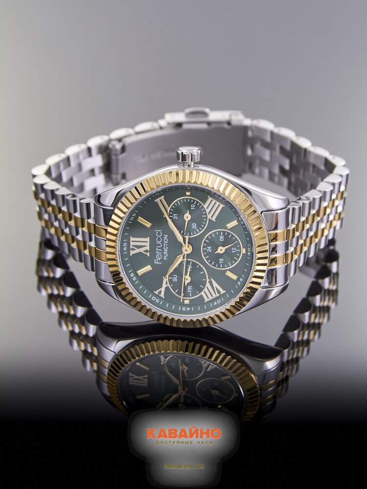 Модель FERRUCCI 03486-03 оснащена кварцевым механизмом, работающим от батарейки, что гарантирует точность и надежность работы. Дополнительные циферблаты функционируют и обеспечивают максимальную информативность. Кроме того, в часах предусмотрен календарь, что делает их функциональными в повседневной жизни.