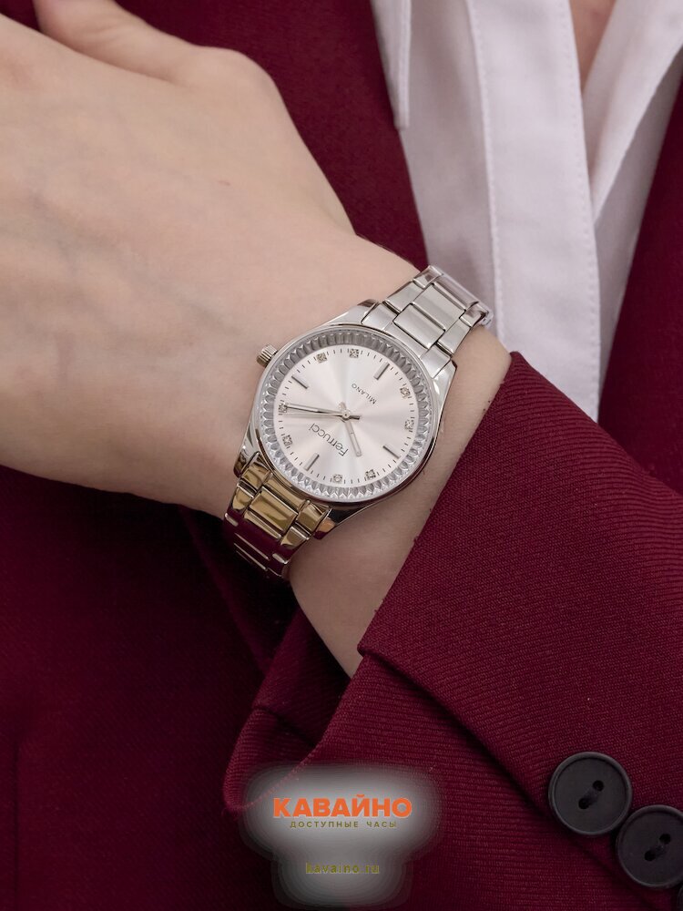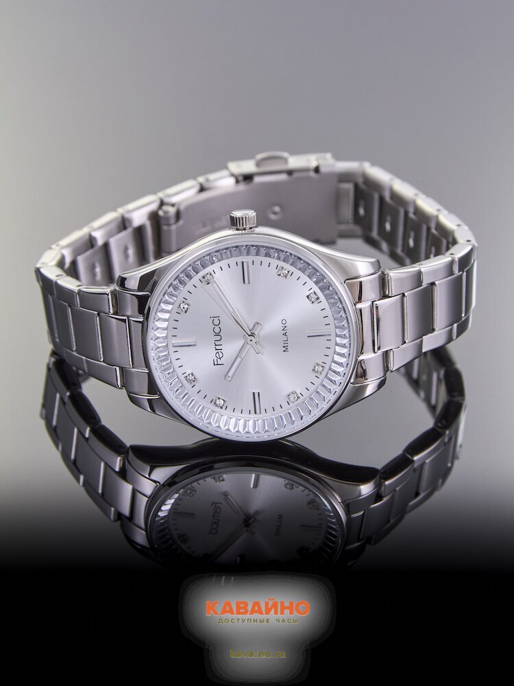 С стильным аналоговым способом отображения времени и утончённым хромированным корпусом, часы FERRUCCI обладают не только функциональностью, но и привлекательным внешним видом. Цвет циферблата — нежный серебристый, а изящные стразы придают дополнительный шик, делая ваш образ по-настоящему запоминающимся.