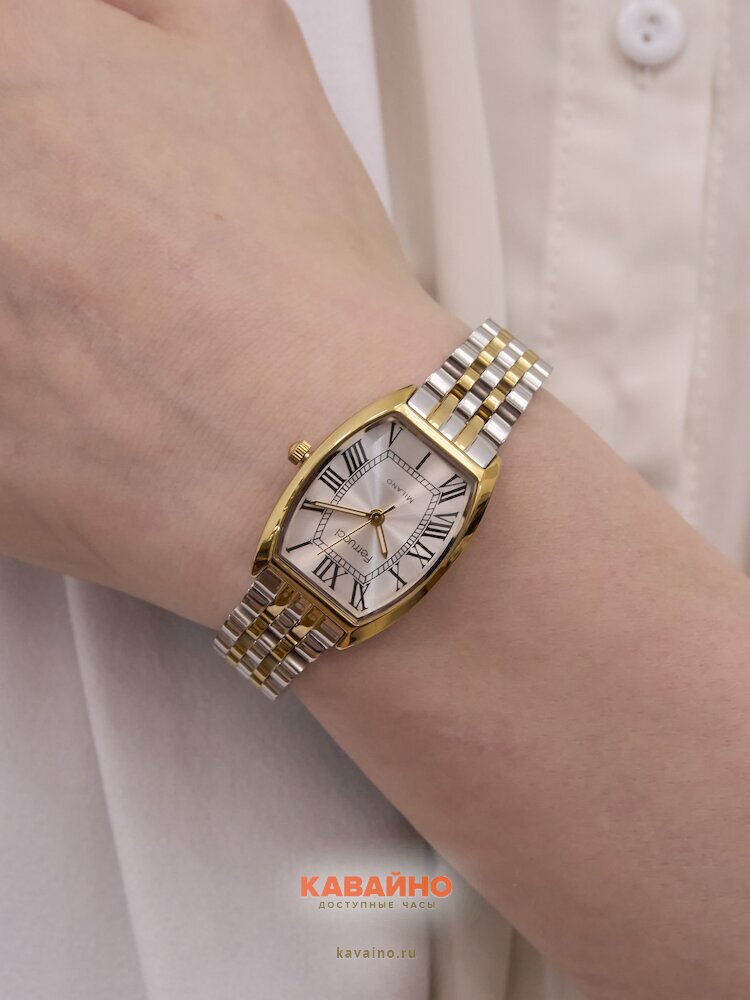 Часы FERRUCCI 03495-06 имеют бочкообразную форму и золотистый корпус, выполненный из прочного материала Alloy, что обеспечивает долговечность и стильный вид. Серебристый циферблат с римскими цифрами добавляет изысканности, а наличие подсветки позволяет легко читать время в любых условиях.