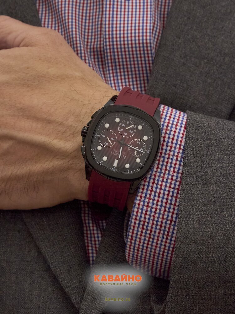 С помощью аналогового способа отображения времени и дополнительных действующих циферблатов вы всегда будете в курсе времени и различных его аспектов. Удобные отметки на циферблате позволяют мгновенно ориентироваться, а стильный бордовый цвет циферблата и корпуса с черным матовым оттенком создают эффектный контраст, подчеркивающий вашу индивидуальность.