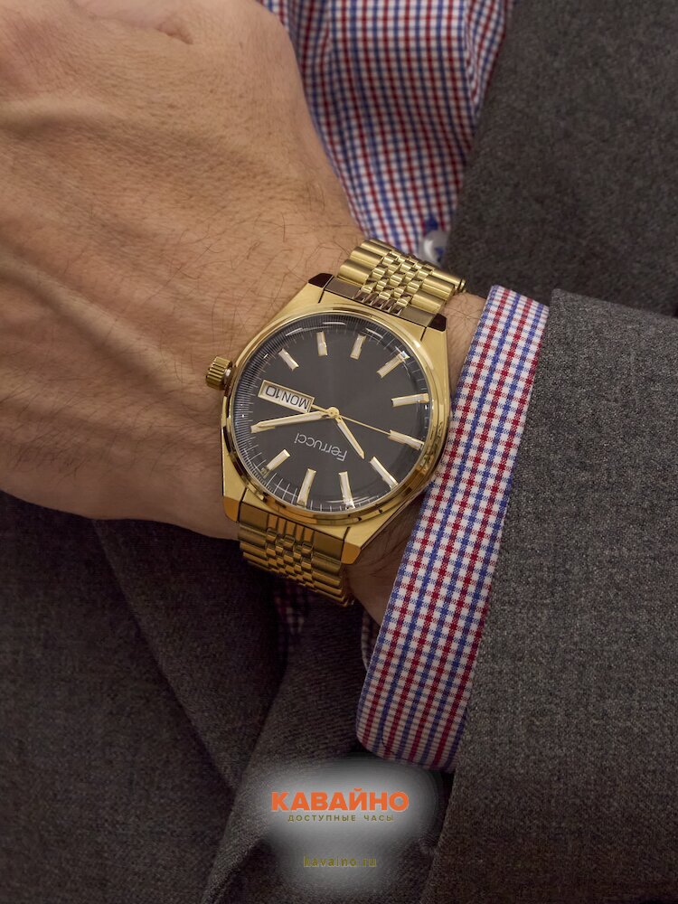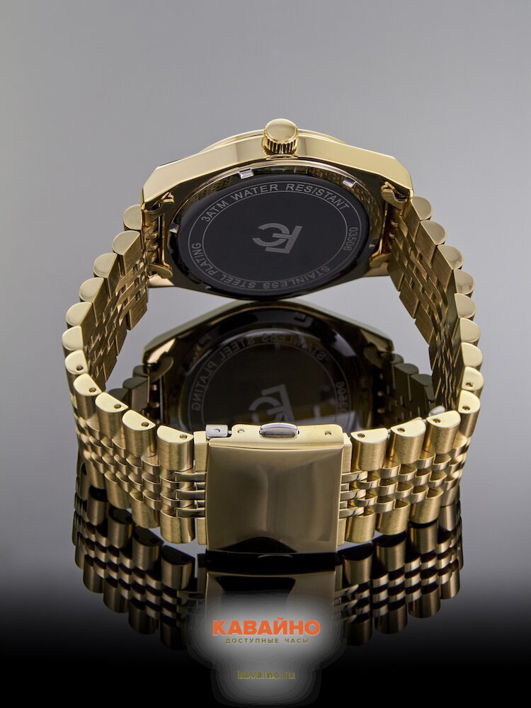 Корпус часов выполнен из легкого и прочного сплава, излучающего утонченный золотистый блеск. Этот цвет подчеркивает стиль и статус владельца, создавая ощущение роскоши. Нержавеющая сталь, из которой изготовлен браслет, не только добавляет долговечности, но и обеспечивает комфорт при носке. Длина ремешка – 175 мм, а ширина – 20 мм, что позволяет идеально подогнать часы под ваше запястье.