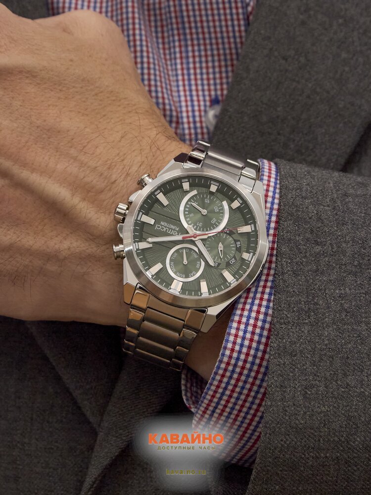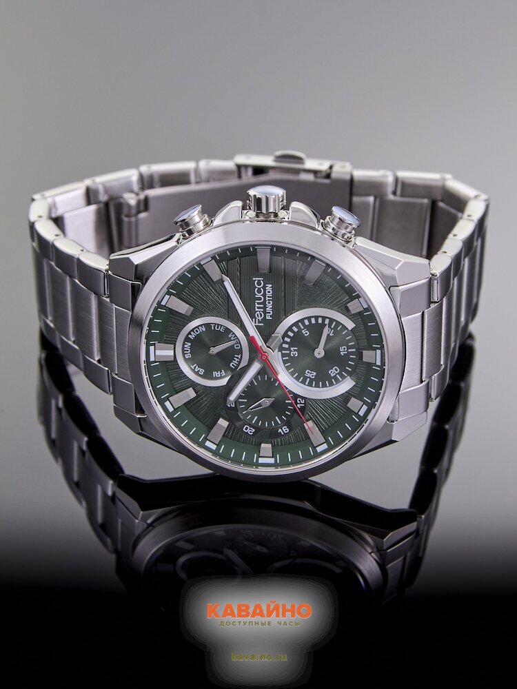 Корпус FERRUCCI 03510-03 выполнен из высококачественного сплава (Alloy) и имеет хромовое покрытие, что придаёт часам современный и стильный вид. Изысканный зелёный циферблат с действующими дополнительными циферблатами и чёткими отметками делает чтение времени не только удобным, но и эстетически приятным.