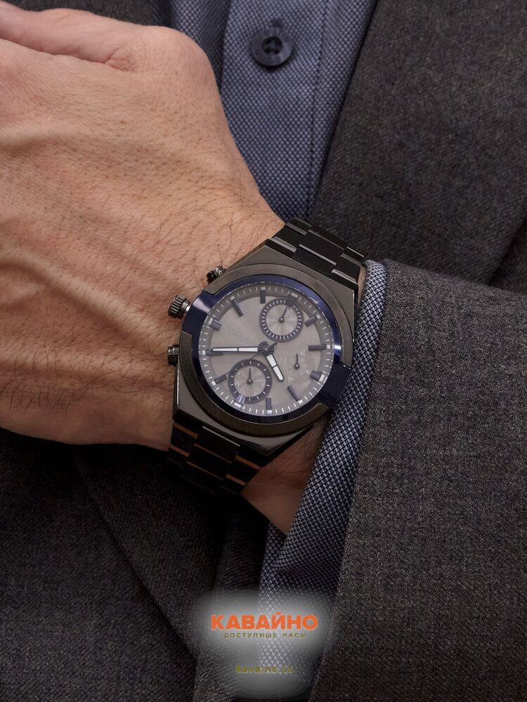 Часы имеют аналогичный способ отображения времени с четкими отметками, что делает их не только стильными, но и функциональными. Вдобавок, наличие дополнительных циферблатов позволит вам следить за временем без лишних усилий. Основной циферблат, также в темно-сером цвете, дополнен прочным минеральным стеклом, защищающим его от царапин и повреждений.