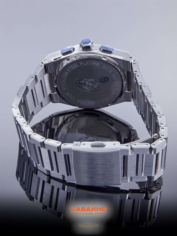 Корпус часов выполнен из прочного сплава (Alloy) с хромовым покрытием, придающим им роскошный вид, а серебристый браслет из нержавеющей стали обеспечивает надежность и долговечность. Длина ремешка составляет 180 мм, а ширина — 25 мм, что гарантирует идеальную посадку на запястье.