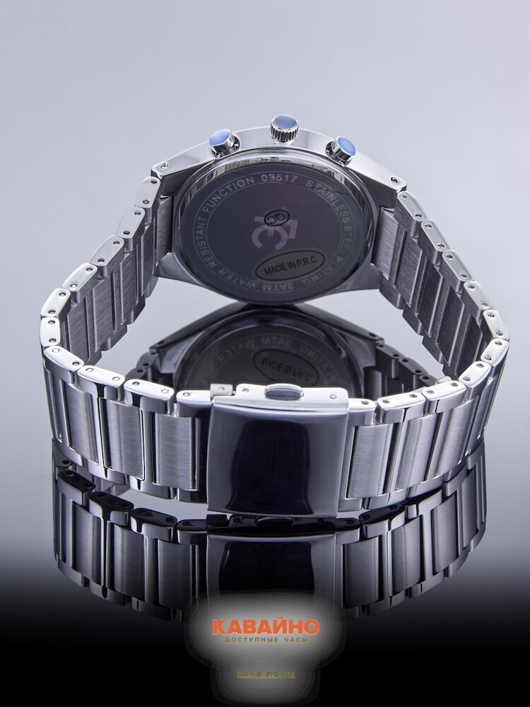 Корпус часов выполнен из качественного сплава (Alloy) с хромовым покрытием, что придаёт им прочность и современный вид. Стальной браслет с элегантным серебристым оттенком обеспечивает комфортное ношение и долговечность. Ширина ремешка составляет 24 мм, а его длина — 180 мм, что делает часы подходящими для большинства запястий.