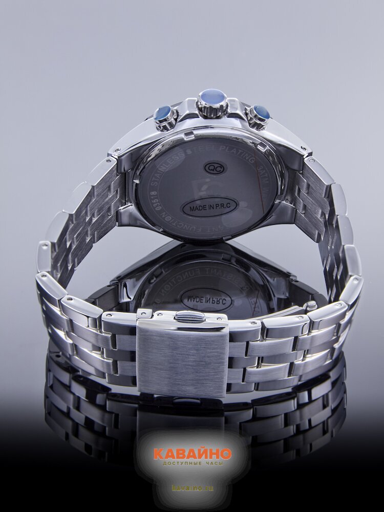 Корпус часов выполнен из прочного сплава с хромированным покрытием, что придаёт ему стильный и современный вид. Серебристый браслет из нержавеющей стали не только элегантен, но и долговечен, а минеральное стекло защищает циферблат от царапин и повреждений. Чёрный цвет циферблата придаёт часам строгости и шика, делая их идеальными для любых поводов — от деловых встреч до вечерних выходов.