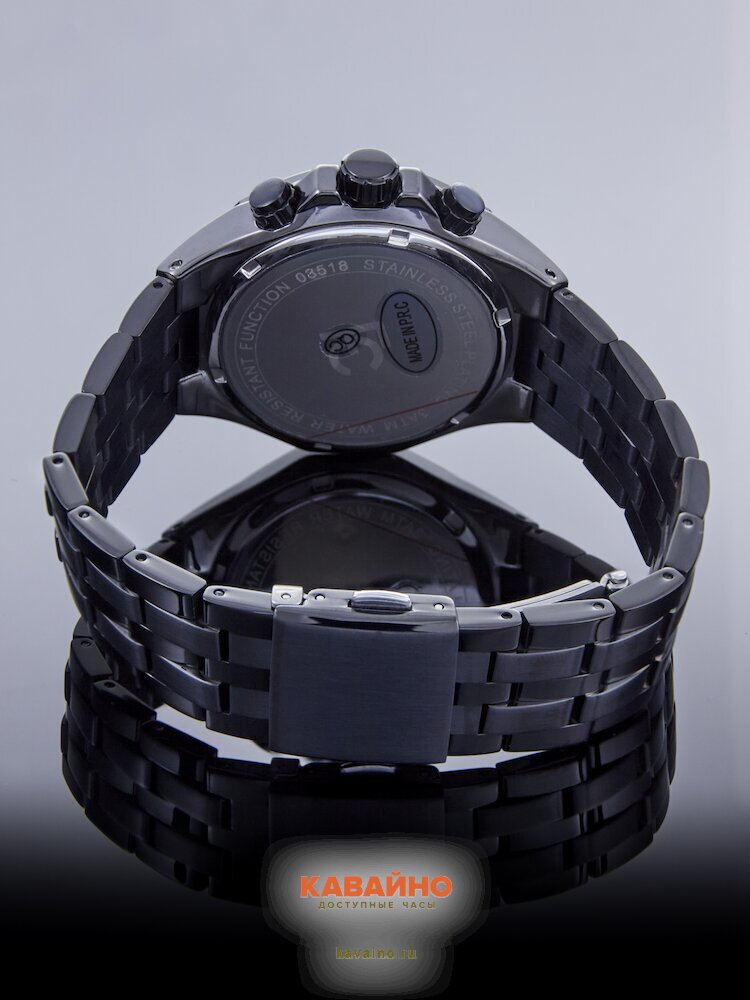 Корпус часов выполнен из прочного сплава (Alloy) в элегантном черном цвете, который отлично дополняется стильным черным браслетом из нержавеющей стали. Это сочетание материалов не только придаёт часам надежность, но и создает впечатляющий визуальный эффект. Ширина браслета - 21 мм, а общая длина - 180 мм, что способствует отличной посадке на запястье и комфорту в ношении.