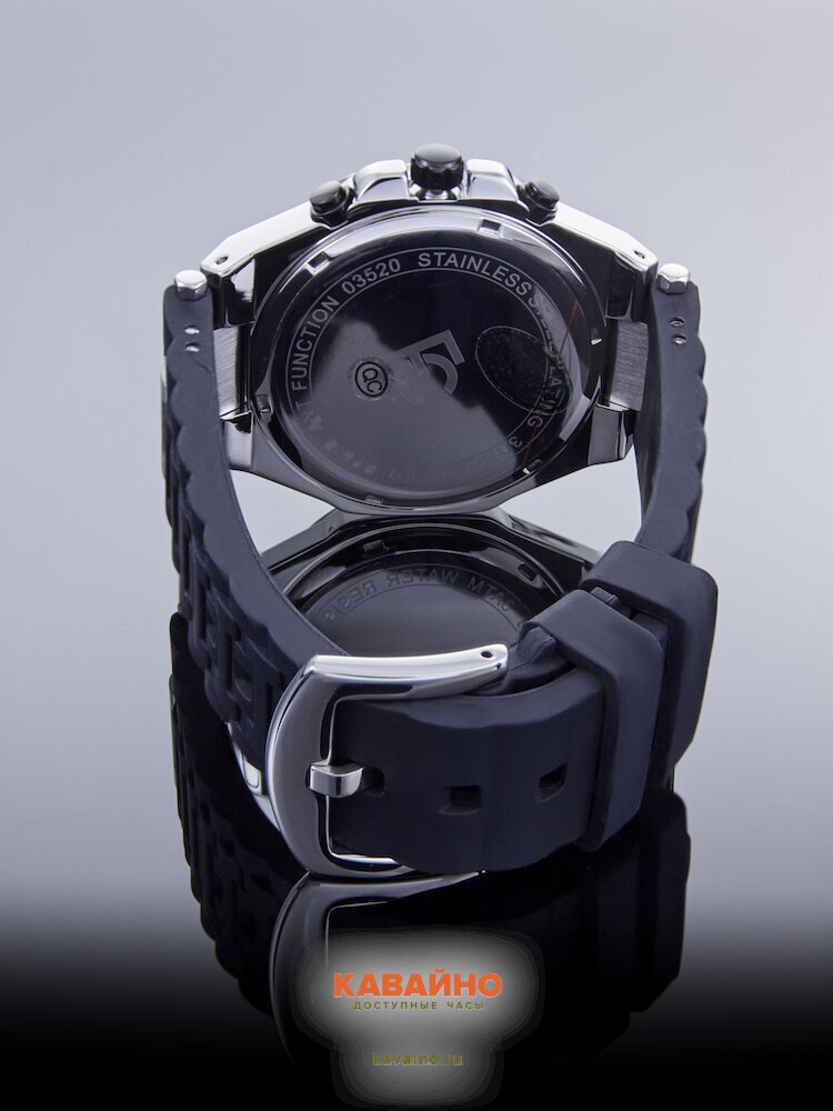 Ремешок из качественного силикона темно-серого цвета гарантирует надежность и комфорт при носке. Длина ремешка составляет 200 мм, а ширина — 22 мм, что идеально подходит для большинства запястьев. Также стоит отметить наличие календаря, который будет полезен в повседневной жизни.