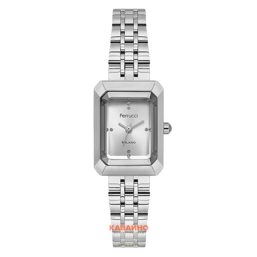 Дизайн модели FERRUCCI 3559-01 выполнен в трендовом fashion-стиле с прямоугольным корпусом, который прекрасно подойдет для женщин, ценящих изысканность и комфорт. Хромированный цвет корпуса и браслета, изготовленного из нержавеющей стали, создают стильный контраст с серебристым циферблатом, дополненным эффектными стразы, которые добавляют особого блеска.
