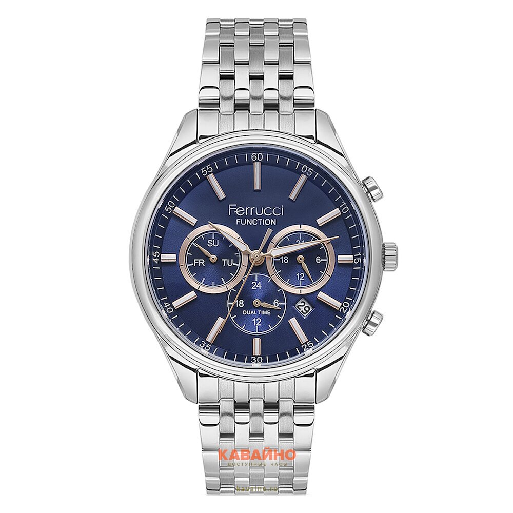 Функциональность часов не менее впечатляющая. Аналоговое отображение времени с яркими отметками позволяет быстро считывать цифры, а синий цвет циферблата создает стильный контраст с блестящим корпусом и ремешком. Дополнительные циферблаты и календарь, а также поддержка второго часового пояса делают FERRUCCI 3550-04 универсальным решением для повседневной жизни и деловых встреч.