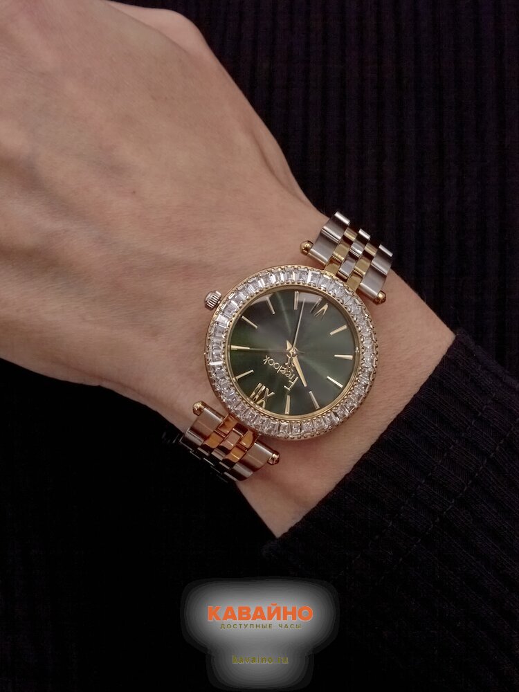 Циферблат в изысканном зеленом цвете привлекает внимание и создает эффектный контраст с корпусом и ремешком. Комбинированная индикация времени с добавлением Swarovski-стразы придает часам нотку блеска и элегантности, делая их не только функциональным, но и модным аксессуаром. Эти часы работают от надежного кварцевого механизма SEIKO VJ21C1, что обеспечивает точность и долговечность.