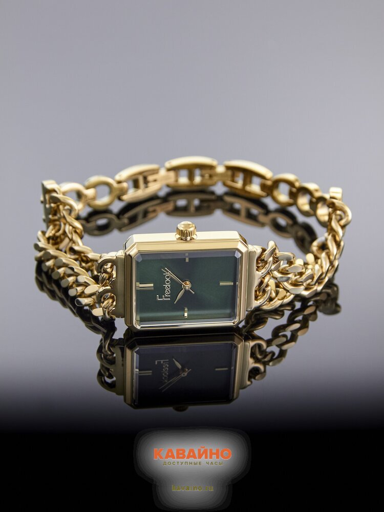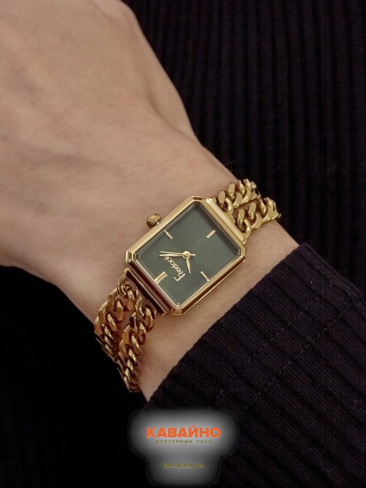 Эти часы предлагают аналоговый способ отображения времени и выполнены в модном прямоугольном корпусе, который излучает изысканность. Золотистый цвет корпуса и браслета из нержавеющей стали подчеркивает их утонченный стиль, а зеленый циферблат добавляет яркости и оригинальности вашему образу.