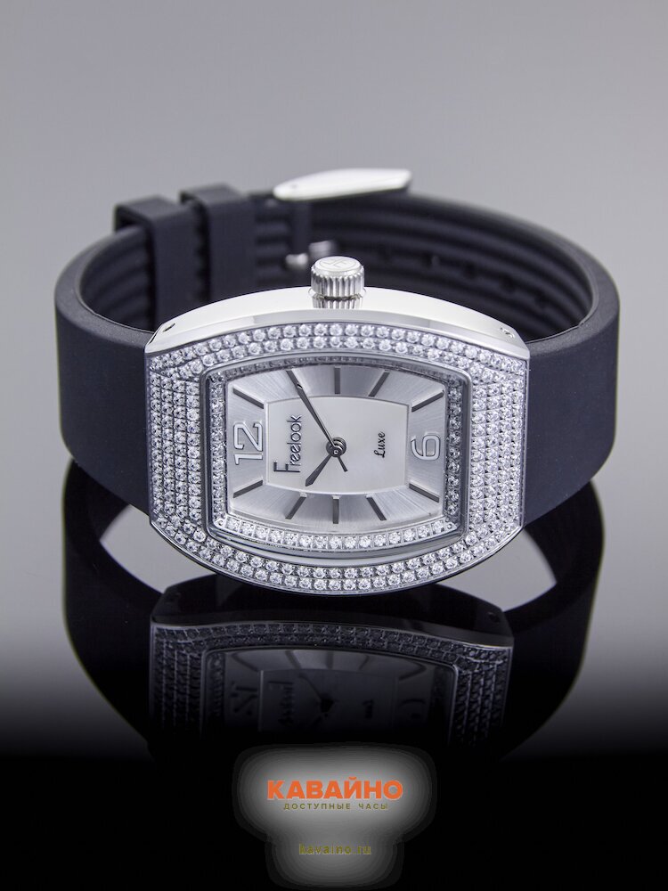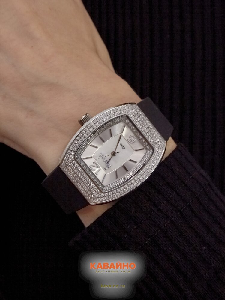 Часы выполнены в бочкообразной форме с корпусом из нержавеющей стали, окрашенным в хром, что придаёт им уникальный и утончённый вид. Серебристый циферблат прекрасно контрастирует с чёрным силиконовым браслетом, создавая стильный и гармоничный образ. Комбинированная индикация времени в сочетании со стразами добавляет нотку роскоши и индивидуальности, что делает эти часы не только практичными, но и настоящим аксессуаром.