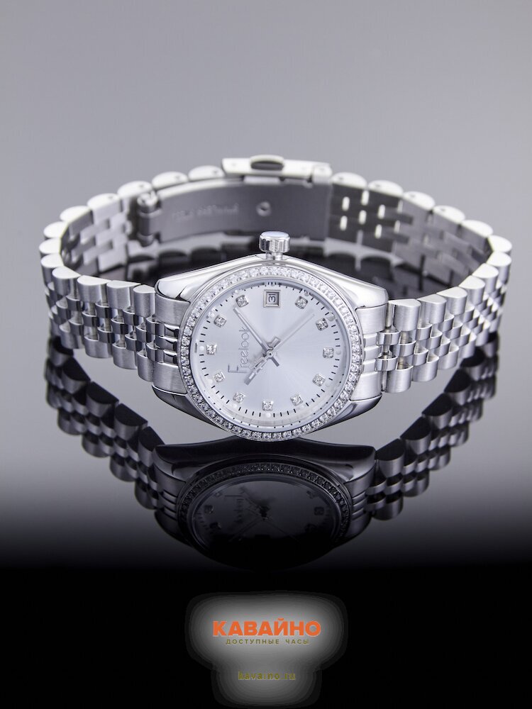 Часы Freelook имеют круглый корпус из нержавеющей стали, сияющий хромированный цвет которого привлекает внимание и делает аксессуар универсальным для любого стиля. Серебристый циферблат с изящными отметками и яркими стразами добавляет роскоши и утонченности, создавая эффектный образ.