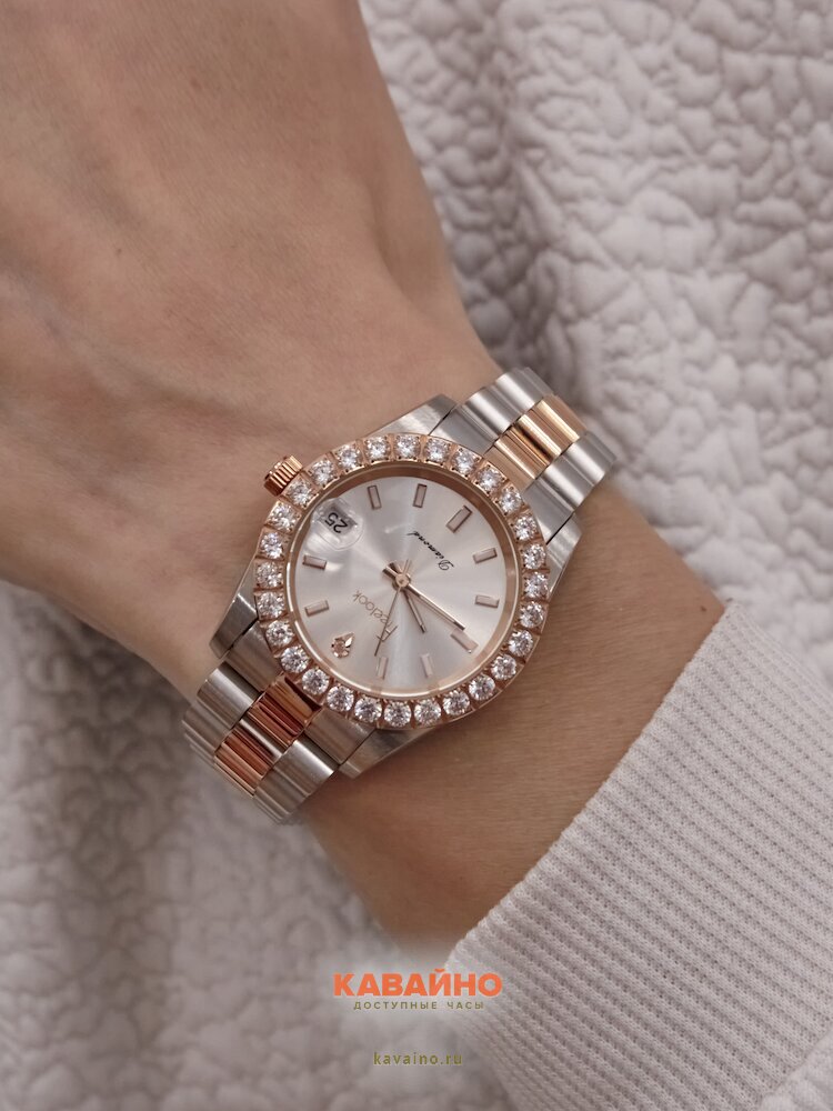 Изготовленные из высококачественной нержавеющей стали, корпус и браслет часов имеют элегантный хромированный и серебристый цвет, что придаёт им особую изысканность. Циферблат с серебристым оттенком дополнен стильными стразы, которые добавляют изюминку и шика.