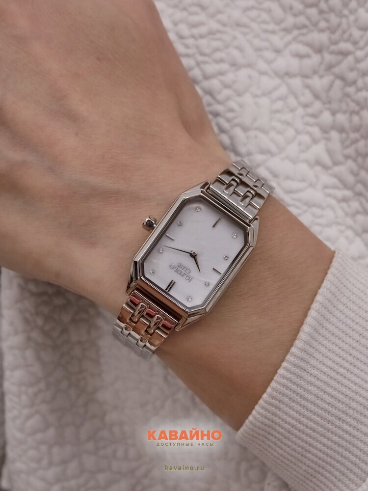 Эти часы выполнены в прямоугольной форме с изысканным хромированным корпусом и браслетом из нержавеющей стали, что обеспечивает не только долговечность, но и высокую степень комфорта при ношении. Перламутровый циферблат с яркими отметками и красивыми стразы излучает элегантность и шик. Они идеально подойдут для любого повода — будь то вечерняя встреча или деловая встреча.