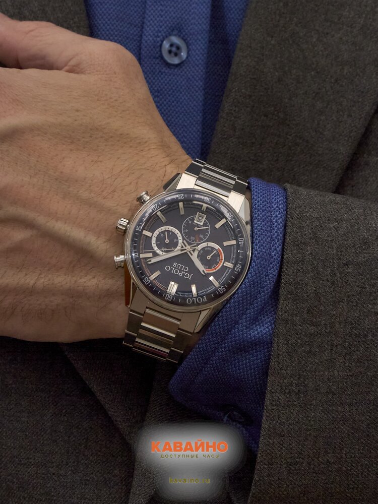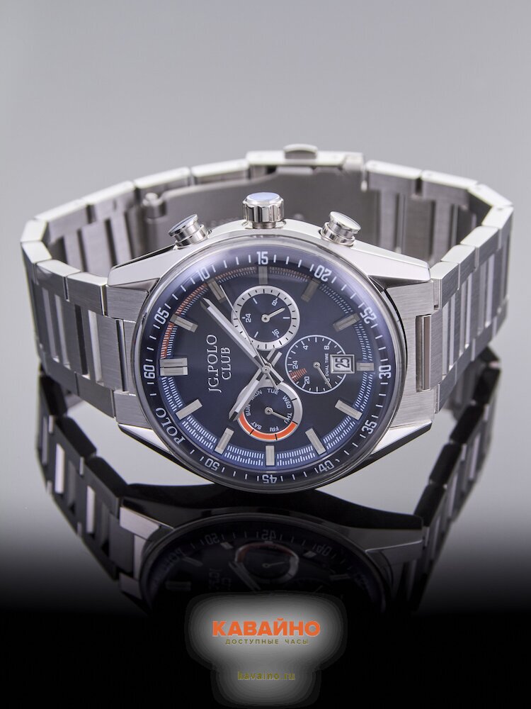 С хромированным корпусом из нержавеющей стали и элегантным серебристым браслетом, часы JG.POLO CLUB привлекают внимание и отражают высокий уровень качества. Яркий синий циферблат с четкими отметками и дополнительными циферблатами делает их не только стильными, но и удобными в использовании. Аналоговый способ отображения времени позволяет легко считывать время, а встроенная подсветка обеспечит видимость даже в условиях недостаточной освещенности.