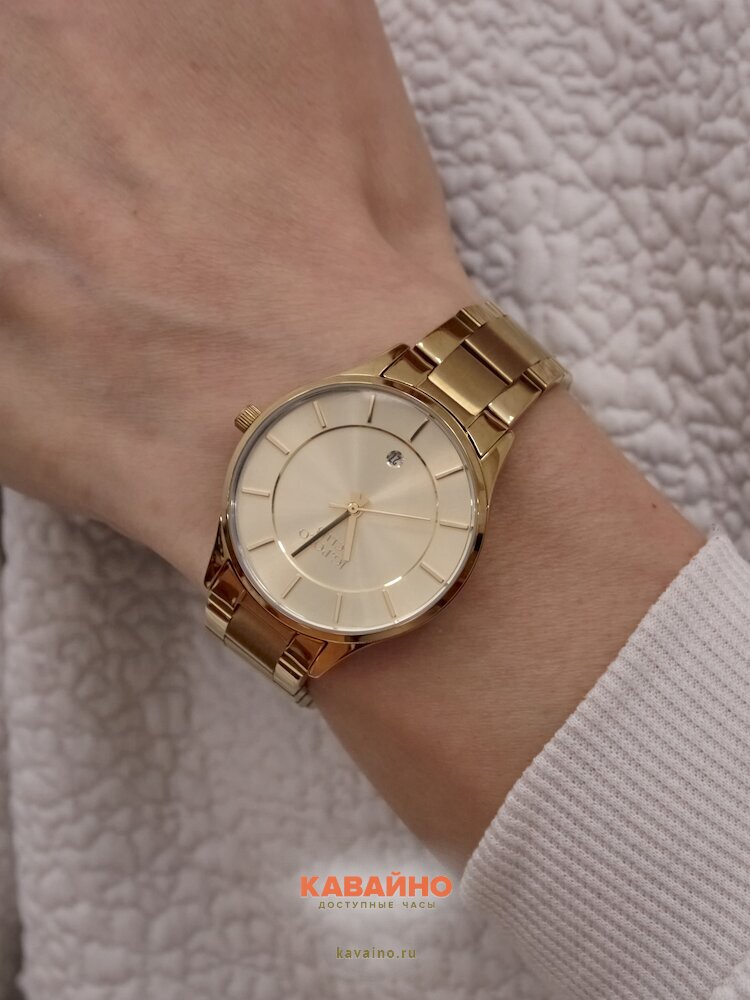 Корпус и браслет выполнены из нержавеющей стали, а их золотистый цвет добавляет изысканности и роскоши в любой образ. Циферблат также золотистого оттенка, что создает гармоничное сочетание с общим дизайном. Часы снабжены отметками для индикации времени и календарем, что обеспечивает дополнительную функциональность.