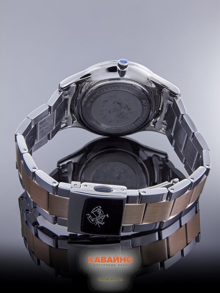 Часы JG.POLO CLUB оснащены кварцевым механизмом, работающим от батарейки, что гарантирует точность и надежность в показаниях. Дополнительная функция календаря будет полезной в повседневной жизни. Класс водонепроницаемости 5 Bar позволяет не беспокоиться о контакте с водой в быту.