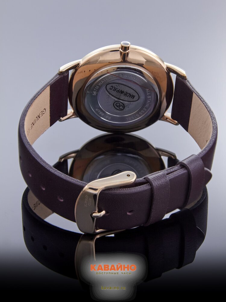 Эти часы, выполненные в классическом стиле, привлекают внимание своим элегантным кругом и корпусом из нержавеющей стали, покрытым роскошным розовым золотом. Чёрный кожаный ремешок добавляет нотку строгости и делает их универсальными для любого наряда — от делового костюма до повседневного образа.