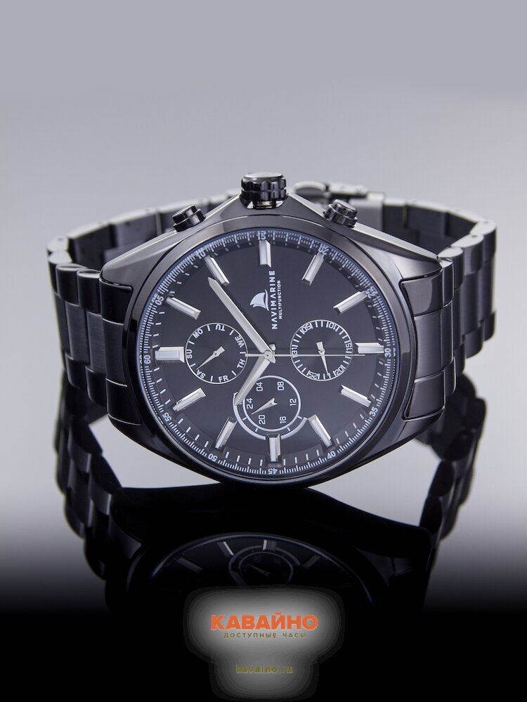 Часы оснащены минеральным стеклом, которое защищает циферблат от царапин. А черный циферблат с отметками в комбинации с дополнительными циферблатами не только визуально привлекателен, но и обеспечивает удобное считывание времени. Подсветка делает часы практичными даже в темное время суток, а встроенный календарь добавляет функциональности в повседневное использование.