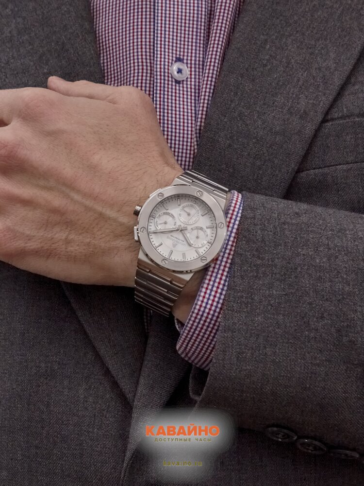 Корпус из хромированного alloy придаёт часам стильный и современный вид, а высококачественный ремешок из нержавеющей стали в серебристом цвете гарантирует долговечность и удобство ношения. С шириной браслета 24 мм и длиной 175 мм, эти часы идеально подойдут на запястье большинства мужчин.