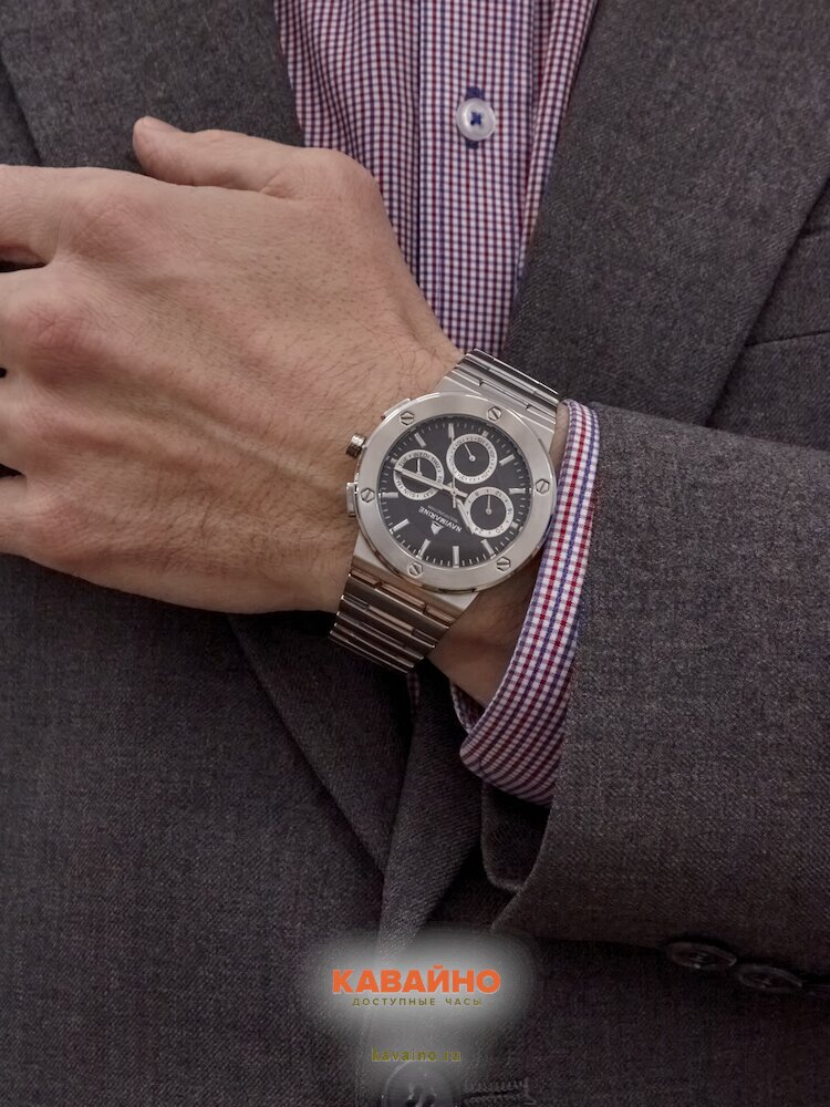 Основной особенностью модели является аналоговый способ отображения времени, который обеспечивает легкость восприятия временных значений. Классический круглый циферблат черного цвета с четкими отметками и действующими дополнительными циферблатами подчеркивает строгость и элегантность. Хромированный корпус из прочного сплава не только выглядит стильно, но и обеспечивает долговечность использования.