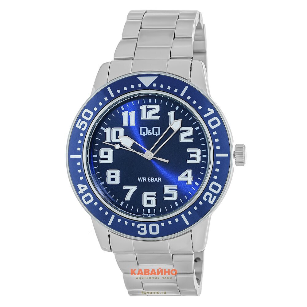 Особенность моделей Q&Q заключается в их высококачественном исполнении и надежности. Корпус из прочного сплава (Alloy) в элегантном хромированном цвете создает стильный контраст с глубоким синим циферблатом, где арабские цифры легко читаются при любом освещении. Часы также оснащены полезной подсветкой, что делает их идеальными для использования в темное время суток.