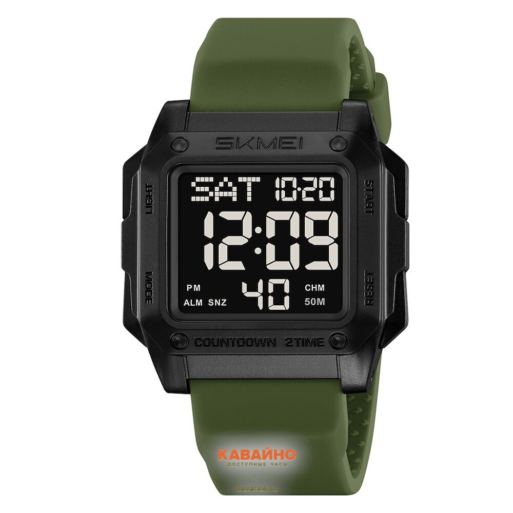 Корпус из легкого и прочного пластика, выполненный в универсальном черном цвете, сочетается с браслетом из качественного зеленого силикона, который обеспечивает комфорт при ношении и может похвастаться длиной 215 мм и шириной 24 мм. Эти часы идеально сидят на запястье, создавая ощущение надежности.