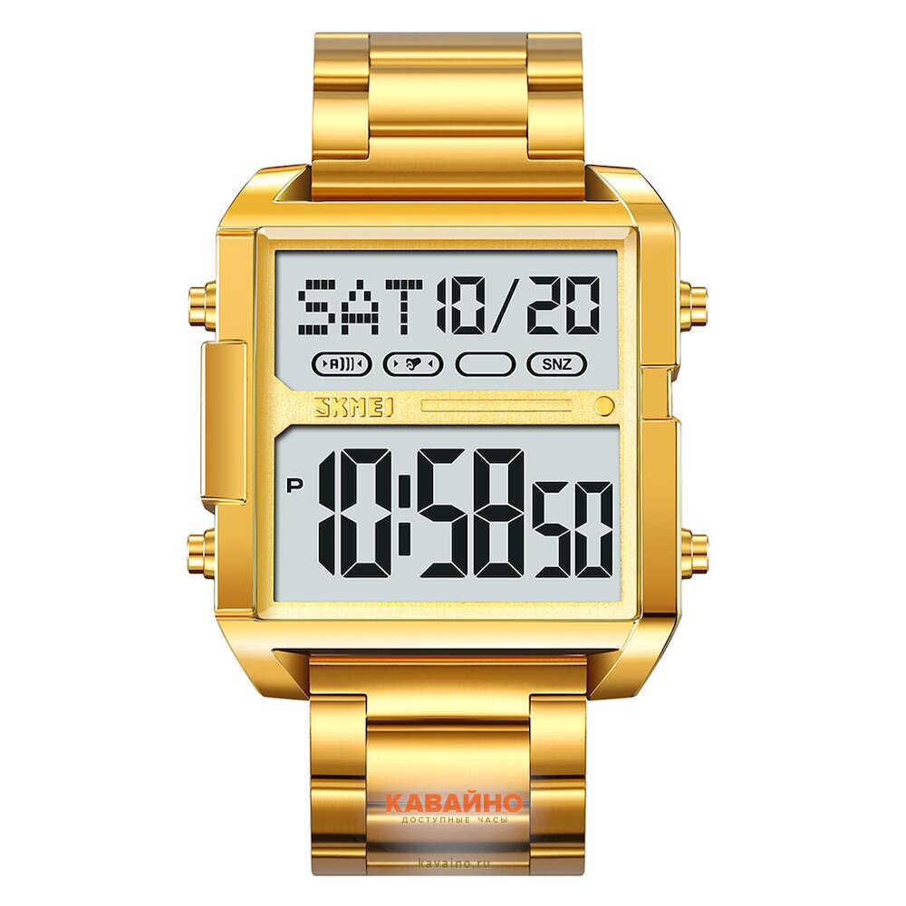 Цифровой способ отображения времени на сером циферблате с арабскими цифрами гарантирует отличную читаемость в любых условиях, а подсветка обеспечит удобство даже в темноте. Корпус из качественного пластика, окутанный золотистым цветом, и браслет из нержавеющей стали, также в золотистом исполнении, создают гармоничное единство стиля и надежности. Длина браслета составляет 180 мм, а ширина — 24 мм, что обеспечивает комфортную посадку на запястье.