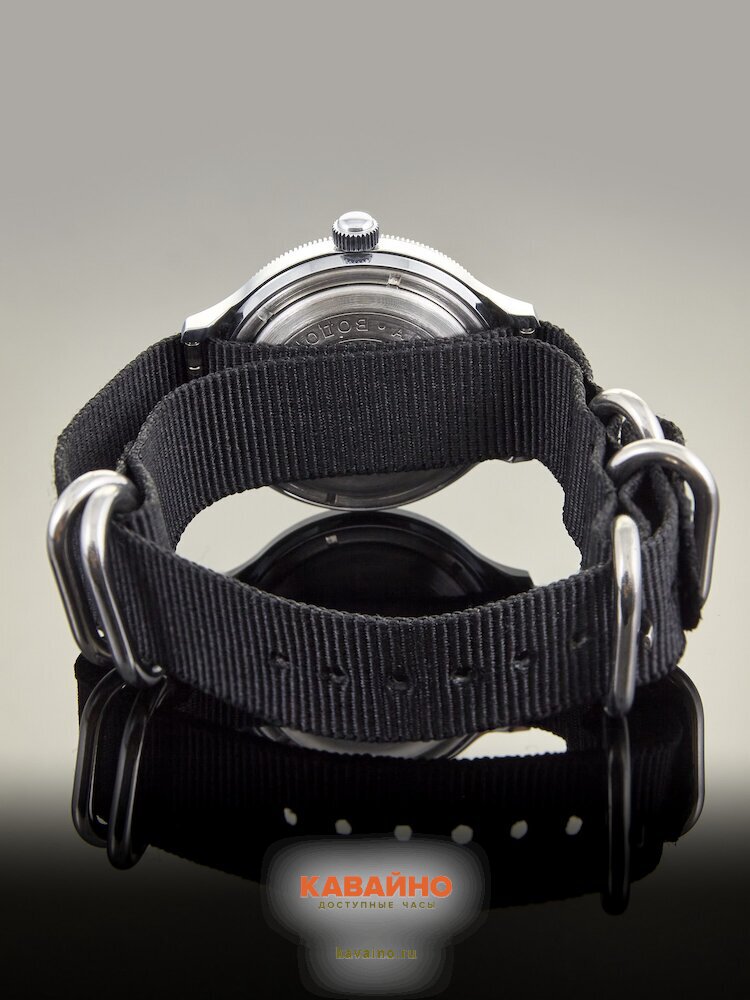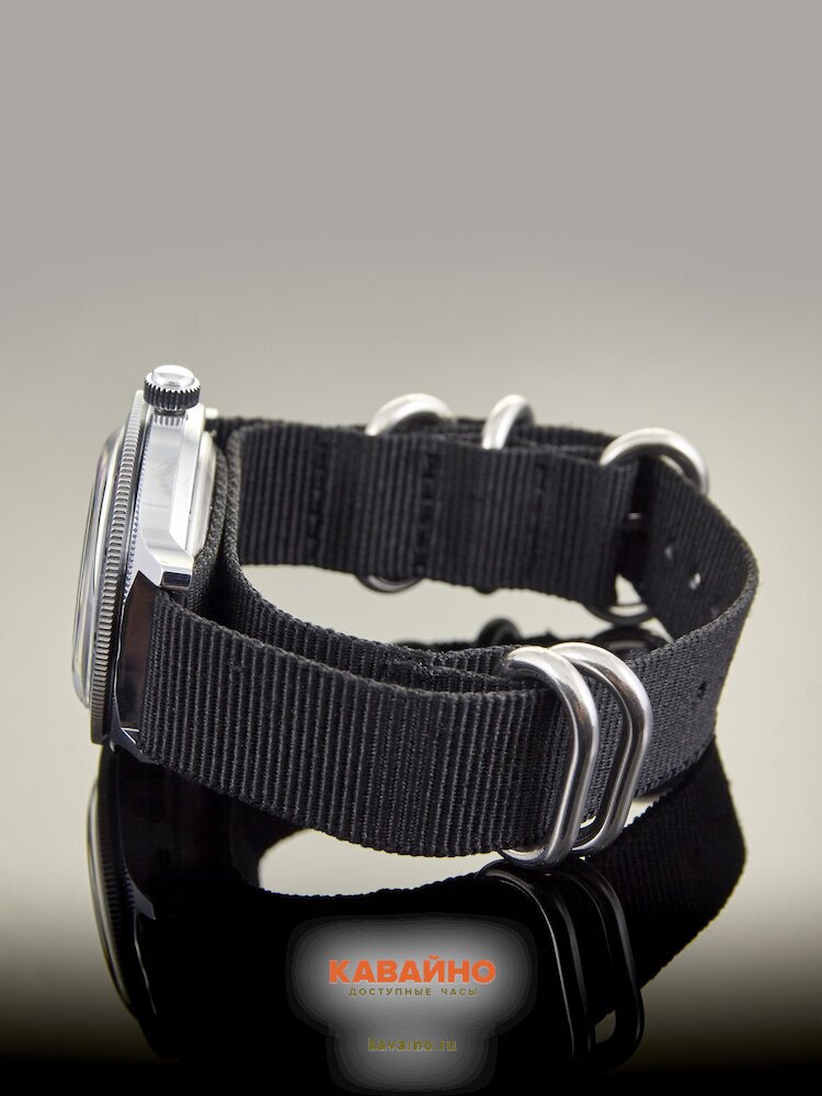 Корпус из хромированной латуни в сочетании с черным текстильным ремешком гарантирует не только долговечность, но и максимальный комфорт в носке. Длина ремешка составляет 235 мм, а ширина – 18 мм, что позволяет удобно подстраиваться под любые мужские запястья.
