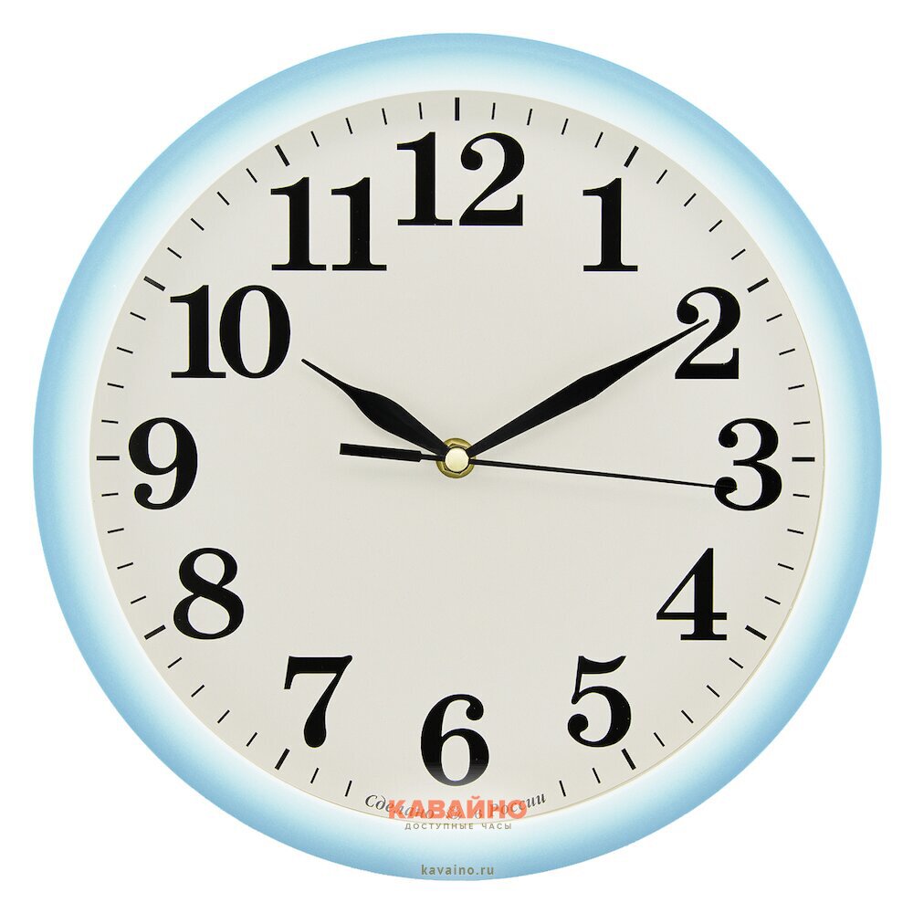 Часы выполнены в круглом формате и имеют привлекательный голубой корпус, который легко впишется как в современный, так и в традиционный интерьер. Белый циферблат с четкими арабскими цифрами обеспечивает отличную читаемость времени, что особенно актуально на кухне, в гостиной, спальне или коридоре.
