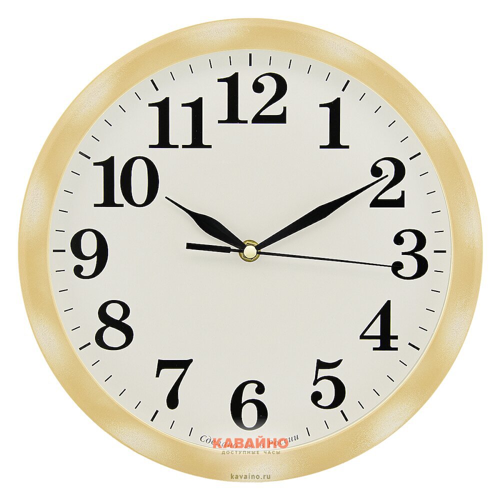 Часы выполнены в круглом формате с элегантным светло-коричневым корпусом, который гармонично впишется в любое пространство: будь то кухня, гостиная, спальня или коридор. Белый циферблат украшен арабскими цифрами, что делает чтение времени простым и легким. Благодаря плавному ходу, вы не только точно будете знать, сколько времени, но и насладитесь тихой атмосферой спокойствия.