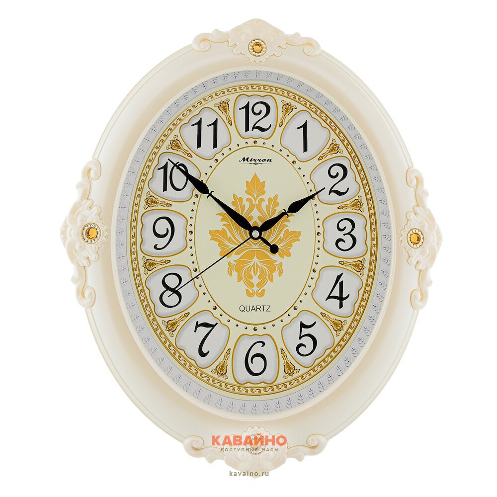 Арабские цифры на циферблате легко читаются, а стильный и лаконичный дизайн прекрасно впишется в классический интерьер или добавит нотку элегантности в современное пространство. Корпус из качественного пластика не только лёгок, но и практичен, а жемчужный оттенок добавляет шарма.