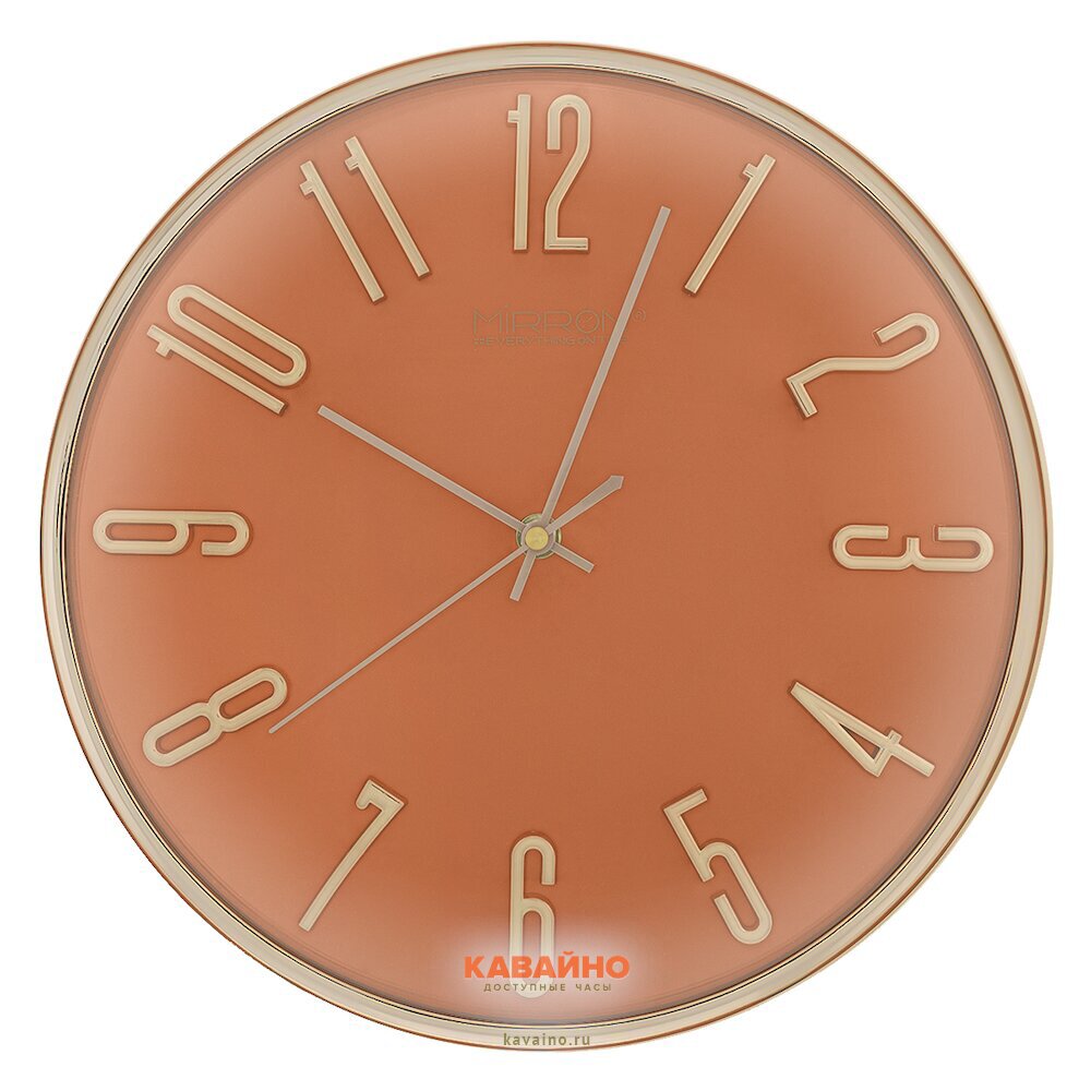 Часы выполнены в круглом формате с золотистым корпусом, который блестит на свету, привнося нотку роскоши в любое пространство. Оранжевый циферблат с ясными арабскими цифрами обеспечивает мгновенное восприятие времени, а плавный ход механизма гарантирует бесшумную работу, что делает их отличным выбором для кухни, гостиной, спальни или коридора.