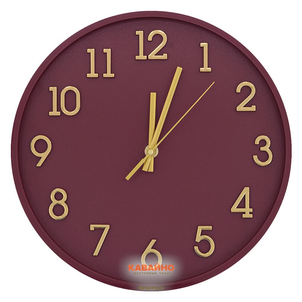 Часы представлены в элегантном круглом корпусе бордового цвета, который добавит изысканности в ваше пространство. Циферблат также выполнен в бордовом оттенке и украшен крупными арабскими цифрами, что обеспечивает легкость считывания времени даже на расстоянии. Их плавный ход гарантирует точность, а кварцевый механизм служит надежной основой для долгого использования.