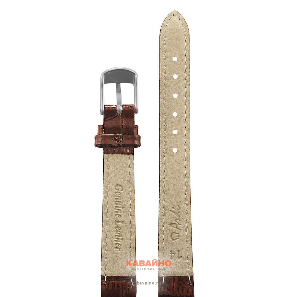 Ширина ремешка составляет 14 мм, что делает его универсальным и подходящим как для повседневного, так и для вечернего наряда. Коричневый цвет ремня легко сочетается с любыми оттенками, добавляя вашему стилю элегантности и харизмы. Хромированная застёжка придаёт изделию современный вид, а также обеспечивает надежное крепление.