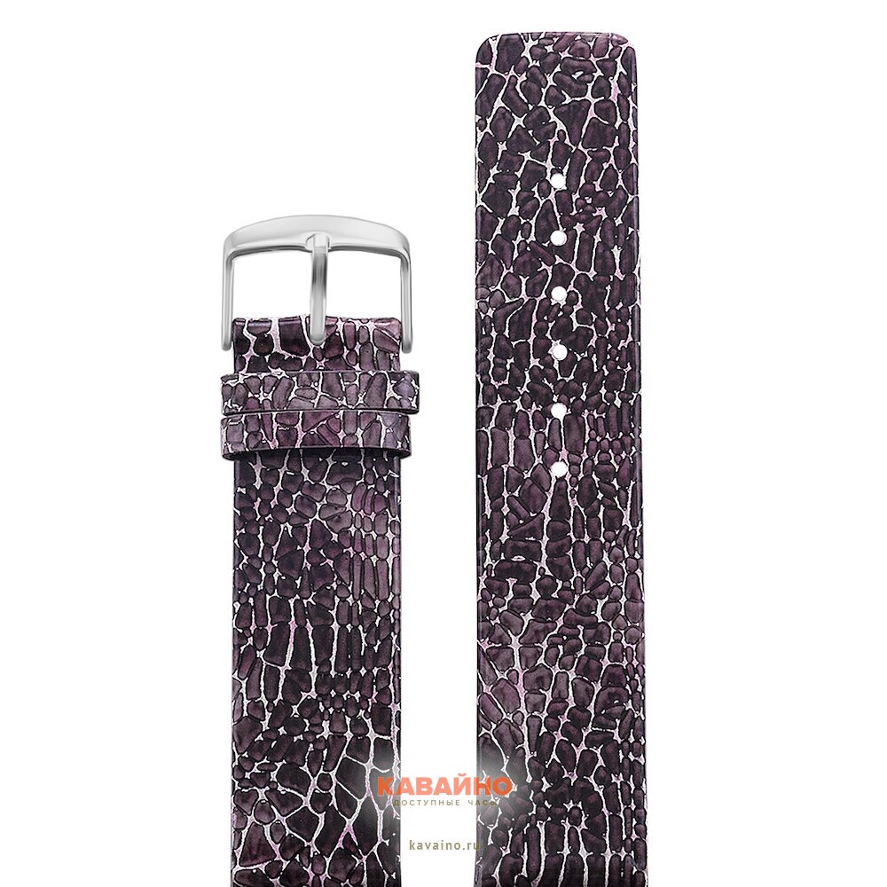 Ремешок выполнен из натуральной кожи, что обеспечивает комфорт при ношении и долговечность изделия. Элегантный фиолетовый цвет с оригинальным змеиним узором добавляет изысканности и делает его заметным акцентом в вашем образе. Хромированная застёжка не только надежно фиксирует ремешок, но и придаёт ему дополнительный блеск.