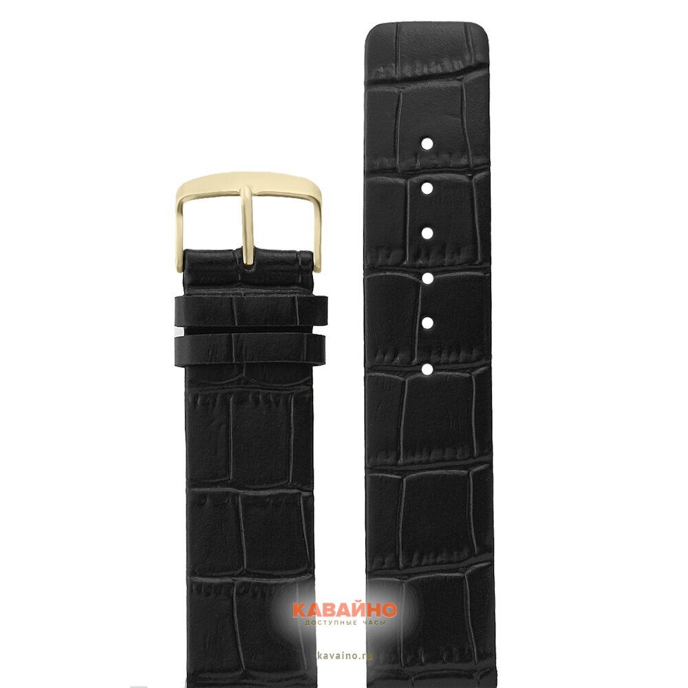 Ремешок шириной 22 мм выполнен из натуральной кожи высокого качества, что обеспечивает не только долговечность, но и комфорт в носке. Черный цвет товара делает его универсальным, идеально сочетающимся как с деловым, так и с повседневным стилем. Золотая застёжка придаёт аксессуару изысканный акцент и добавляет нотку элегантности, что особенно подчеркивает ваш статус и стиль.