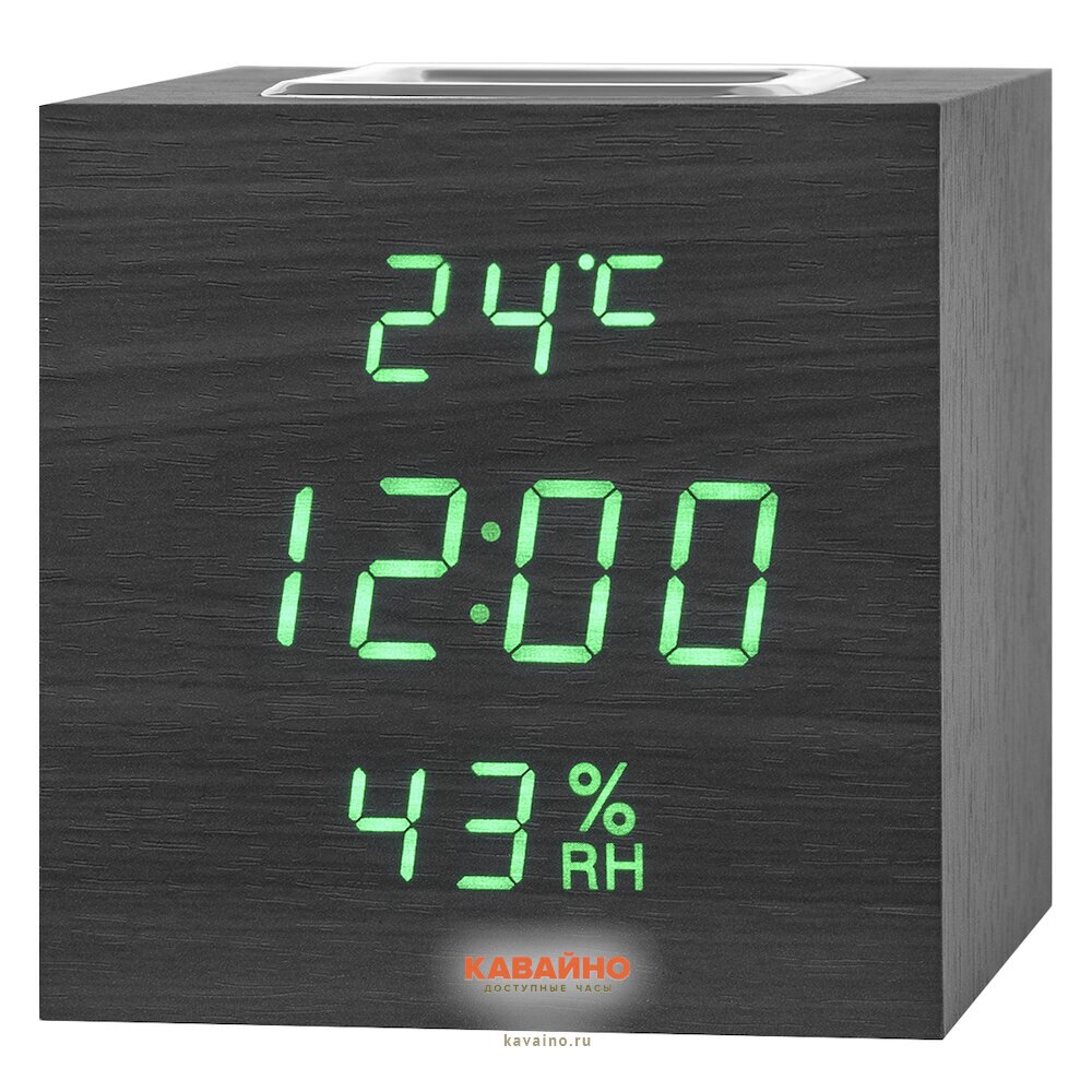 Сетевые часы VST878S-4 зел.циф (чер)+USB каб (без адапт)